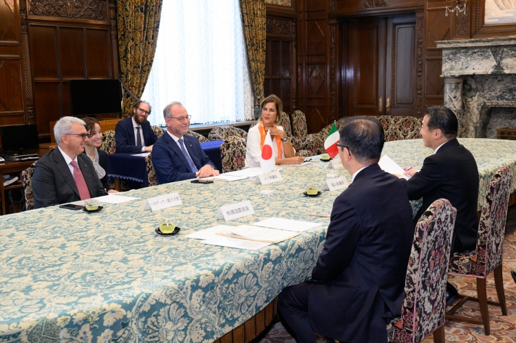 令和7年9月17日(水)、ジョルジョ・ムレ・イタリア共和国下院副議長一行が参議院を訪問し、福山副議長と懇談を行いました。