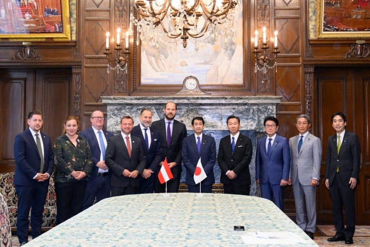 令和7年9月18日(木)、ニコラウス・シェラク・オーストリア・日本友好議員連盟会長一行が参議院を訪問し、関口議長、福山副議長、松山参議院日墺友好議員連盟会長、大家同事務局長及び城内日本・オーストリア友好議員連盟事務局長兼幹事長と懇談を行いました。