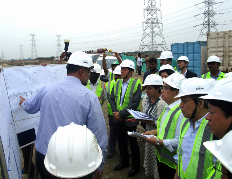 チェンナイでは、急増する道路交通需要への対応を図り、チェンナイ都市圏の経済発展に寄与するチェンナイ周辺環状道路建設計画(円借款)の実施状況を視察した後、民間投資促進や産業振興に関連する政策・制度の改善を促すとともに、インフラ整備の早期実現を推進することにより、投資環境の整備を図るタミル・ナド州投資促進プログラム(円借款)について説明を聴取しました。また、循環器疾患・がん・糖尿病・慢性呼吸器疾患等の非感染性疾患対策に向けた医療施設・機材の整備及び医療従事者の能力強化等により、都市保健医療システムの改善を図るタミル・ナド州都市保健強化計画(円借款)の下で整備された病院を視察しました。