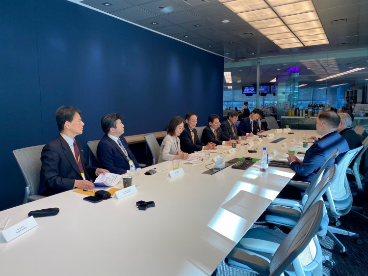 ニューヨークでは、ブルームバーグ社及びオープントロンズ社を視察し、AI開発・活用等について意見交換を行いました。また、我が国の資産運用等についてブラックロック社と意見交換を行ったほか、ナスダック証券取引所を視察し、スタートアップ企業の育成等について意見交換を行いました。